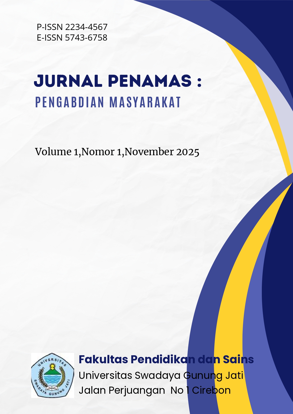 Jurnal PINTAR Abdimas merupakan sarana untuk mempublikasikan publikasi ilmiah dan artikel pengabdian kepada masyarakat (PKM). Jurnal ini dikelola dan berada di bawah naungan Lembaga Pengabdian Masyarakat (LPM) Universitas Swadaya Gunung Jati (UGJ). Jurnal ini mencakup, antara lain : 1. Kewirausahaan 2. Pemberdayaan UMKM 3. Manajemen Akuntansi 4. Ekonomi kreatif 5. Kearifan lokal 6. Inovasi & Bisnis 7. Agribisnis & agroteknologi 8. Teknik sipil 9. Teknik Electro 10. Perencaan wilayah dan kota 11. Ilmu Hukum 12. Ilmu Komunikasi & Ilmu Sosial 13. Pelayanan Masyarakat 14. Pendidikan 15. Kesehatan 16. Teknologi Tepat Guna