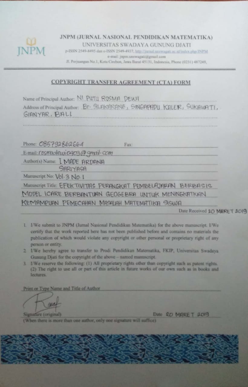 Dwijayani, N M. (2017). Pengembangan Media Pembelajaran ICARE. Jurnal Matematika Kreatif-Inovatif, 8(2), 126-132.