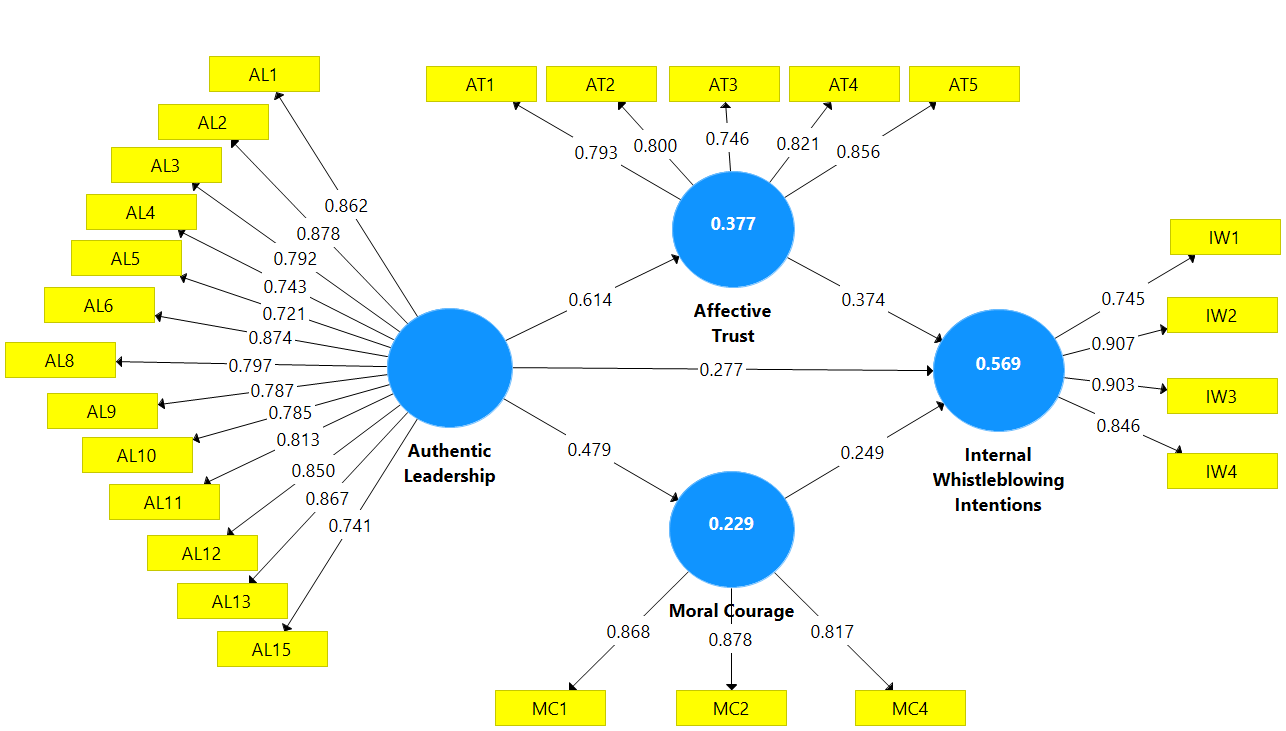 Keywords: Affective trust; Authentic leadership; Internal whistleblowing intentions; Moral courage.